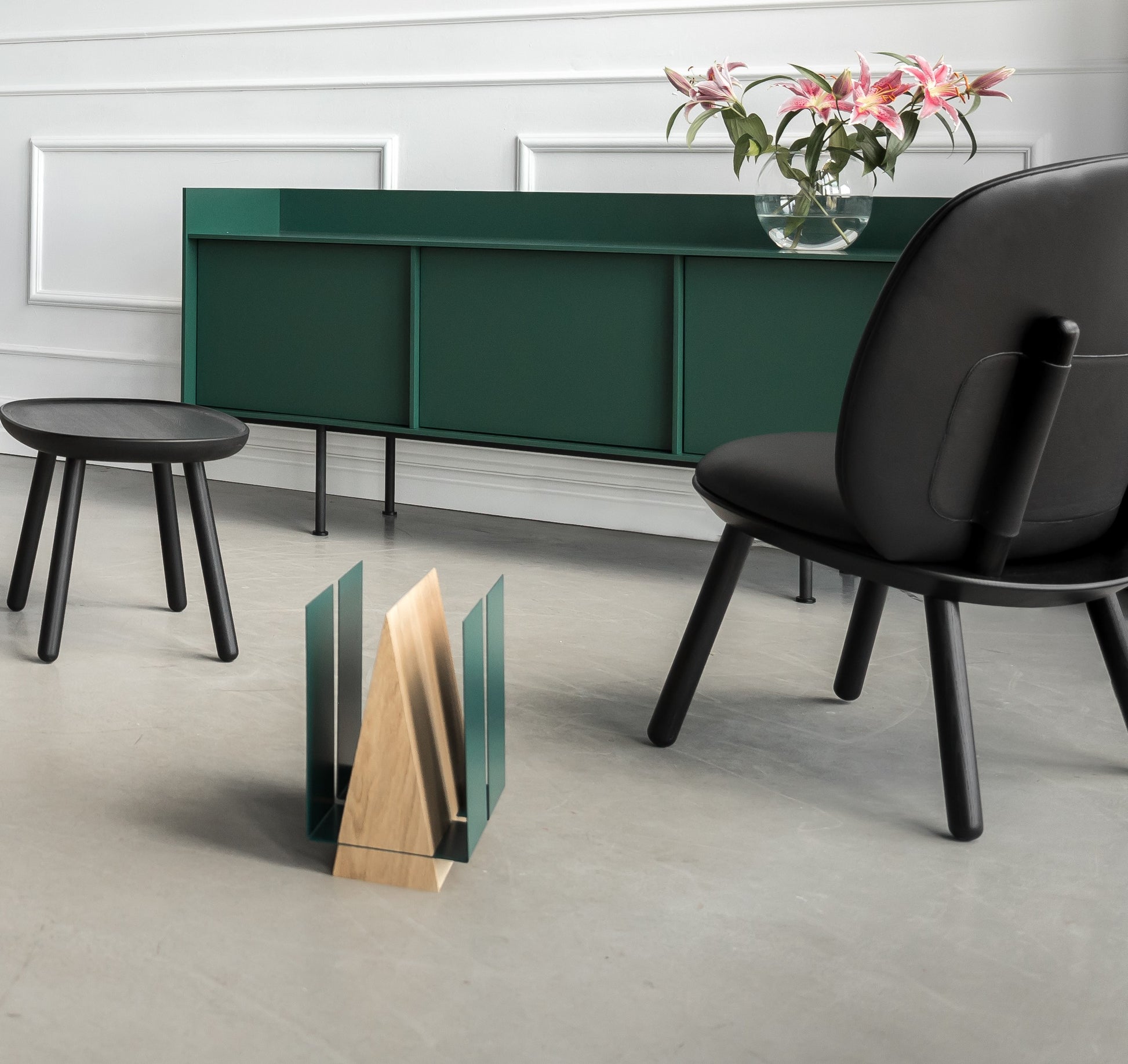 The magazine rack adds an organic touch of minimalistic design to any interior.